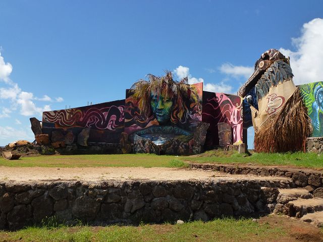 | Easter Island Isla de Pascua Osterinsel - Rapa Nui Maois Festivalbühne deko | Easter Island Isla de Pascua Osterinsel - Rapa Nui Maois Festivalbühne deko |