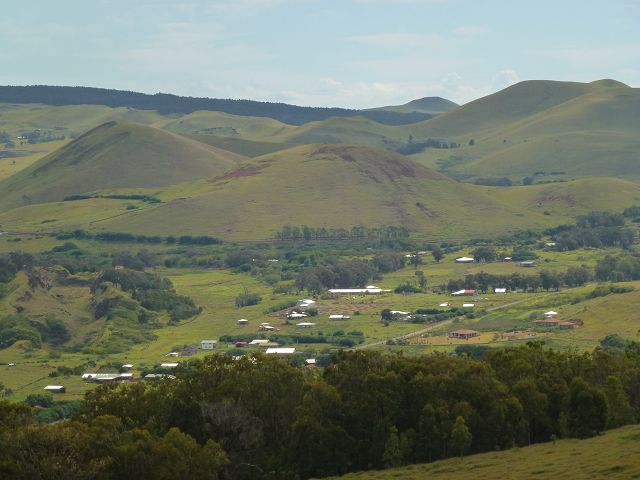 | Easter Island Isla de Pascua Osterinsel Rapa Nui Orongo Krater Orongo Crater Rano kau | Easter Island Isla de Pascua Osterinsel Rapa Nui Blick auf Iorana Hotel |