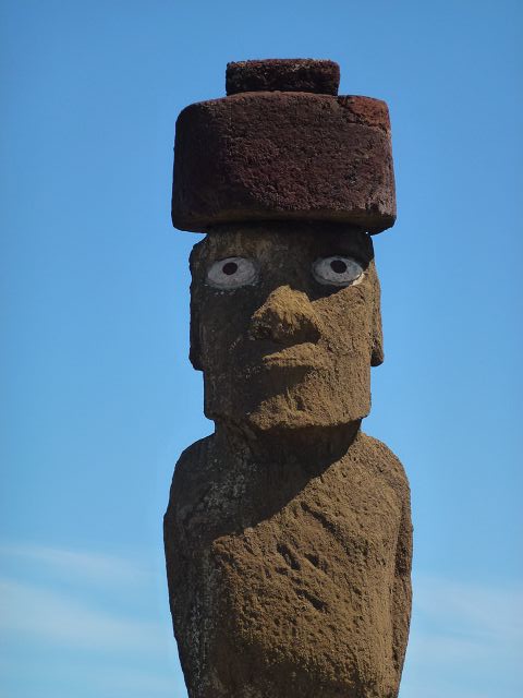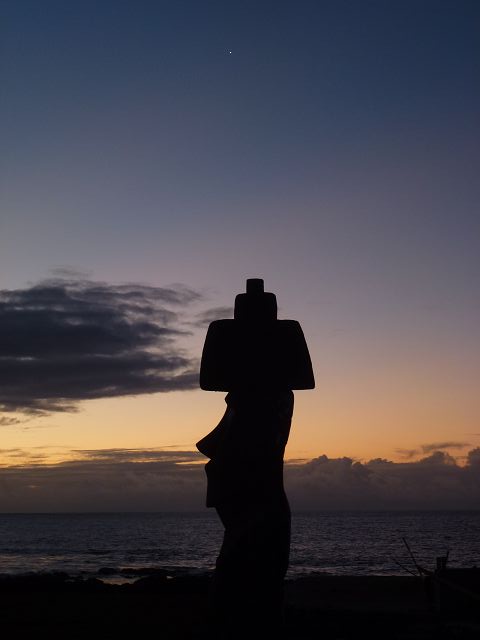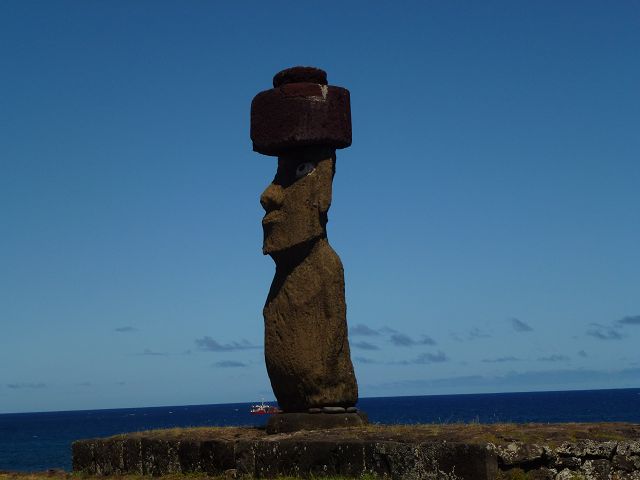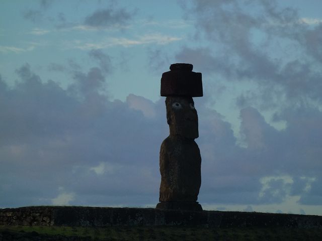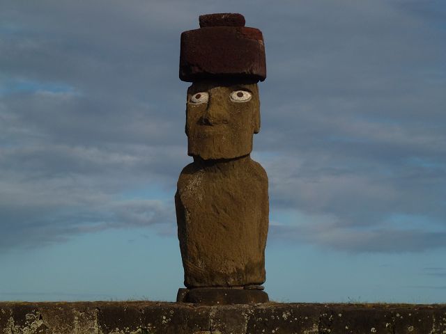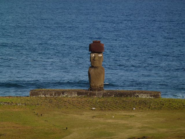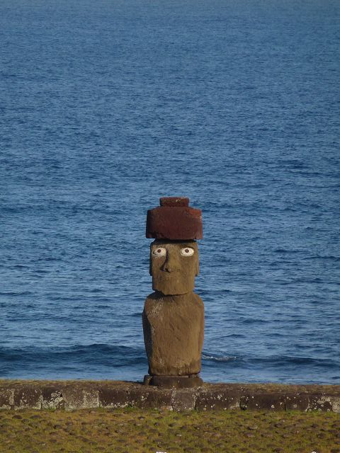 | Ahu Ko te Riku bei Tahai Rapa Nui Moai Tahai Ahu Tahai Ahu Tahai der restaurierte Moai mit Korallenaugen | Easter Island Isla de Pascua Osterinsel Rapa Nui Moai Ahu Tahai der restaurierte Moai mit Korallenaugen |