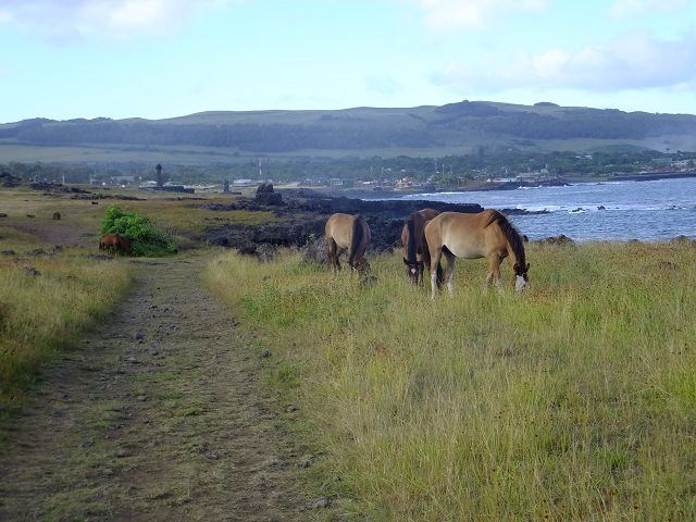 | Easter Island Isla de Pascua Osterinsel - Rapa Nui Moai Hanga Koie | Easter Island Isla de Pascua Osterinsel Rapa Nui unsere täglicher Weg vom Hotel altiplanico nach Hanga Roa |