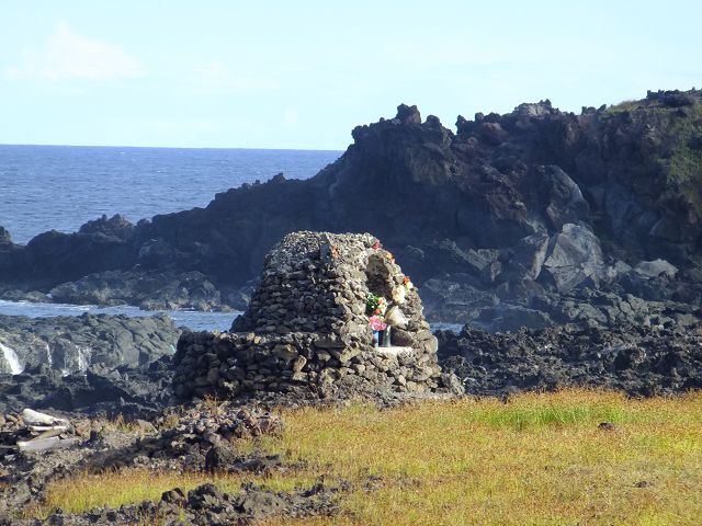 | Easter Island Isla de Pascua Osterinsel - Rapa Nui Marienkapelle am Meer | Easter Island Isla de Pascua Osterinsel Rapa Nui Moai Hanga Koie |