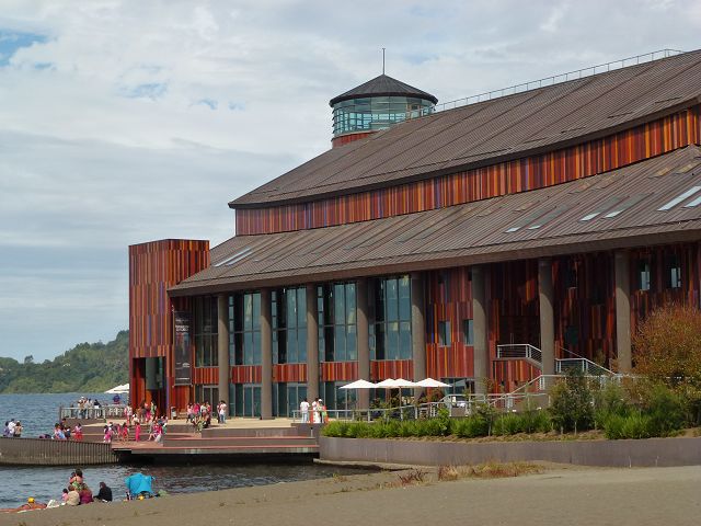 Frutiliar am Lago Llanquihue mit dem Vulkan Osorno Frutiliar am Lago Llanquihue mit dem Vulkan Osorno Frutiliar Konzerthalle