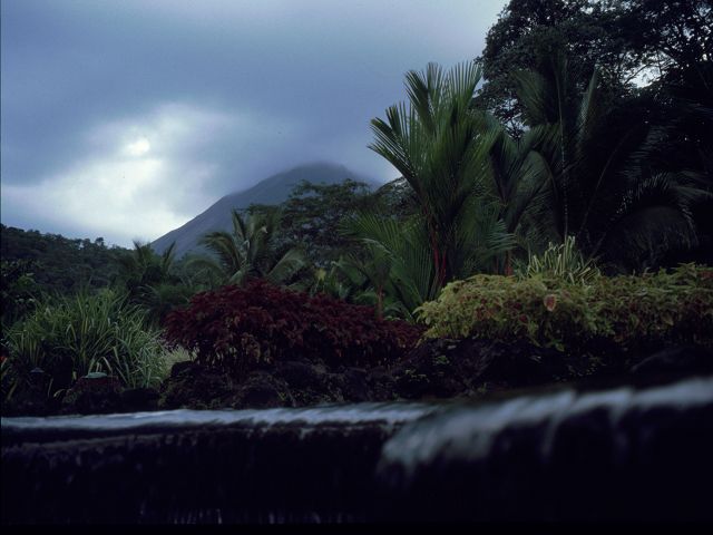 Thermalbad mit heißem Vulkanwasser am Fuße des Arenal  Tabacon-Therme Tabacon Resort & Spa (Heiße Quellen von Tabacón)  Kirche am Arenal
