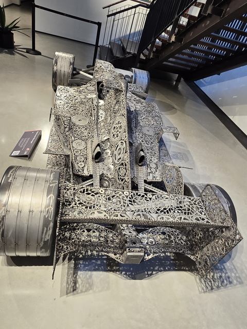 | Skulptur "F1-2000" aus der Ausstellung "Giganten aus Stahl". Die Skulptur ist ein Unikat, gefertigt aus tausenden von Einzelteilen | Skulptur "F1-2000" aus der Ausstellung "Giganten aus Stahl". Die Skulptur ist ein Unikat, gefertigt aus tausenden von Einzelteilen |