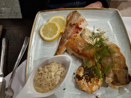 niendorf seaside lounge niendorf seaside lounge Restaurant Kutterscholle mit Krabben |