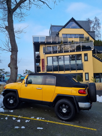 niendorf seaside sundowner at winter Seaside Strandhotel with Big Boy FJ 45