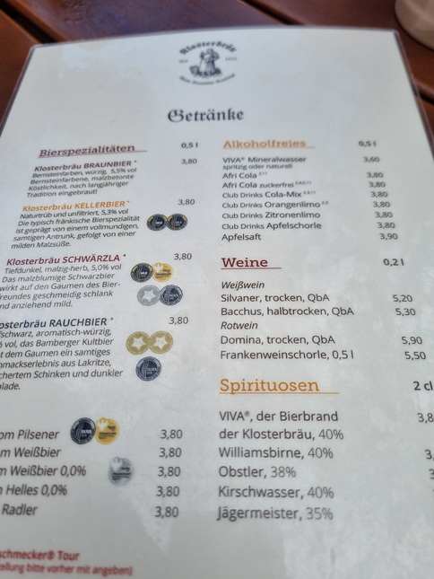 Karte Kellerbier Klosterbräu  0,5 in 2023 € 3,80,-- !!!!!!!!!!!! lecker Bierche Klösterbräu braun
