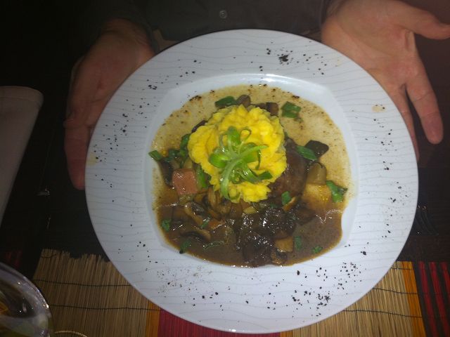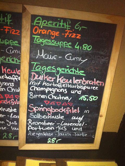 Tagesspeisekarte  bobotie - South African Lounge & Dining Room Duiker Keulenbraten mit Kartoffelkürbispüree Champingnons und Birnenchutney