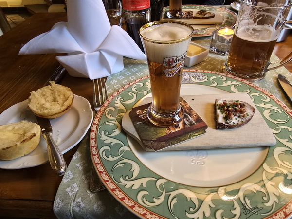 Jagdhaus Glashütte Sitzecke Jagdhaus Glashütte  Vorspeise Stösschen Hövel mit Schmalzbrotecke