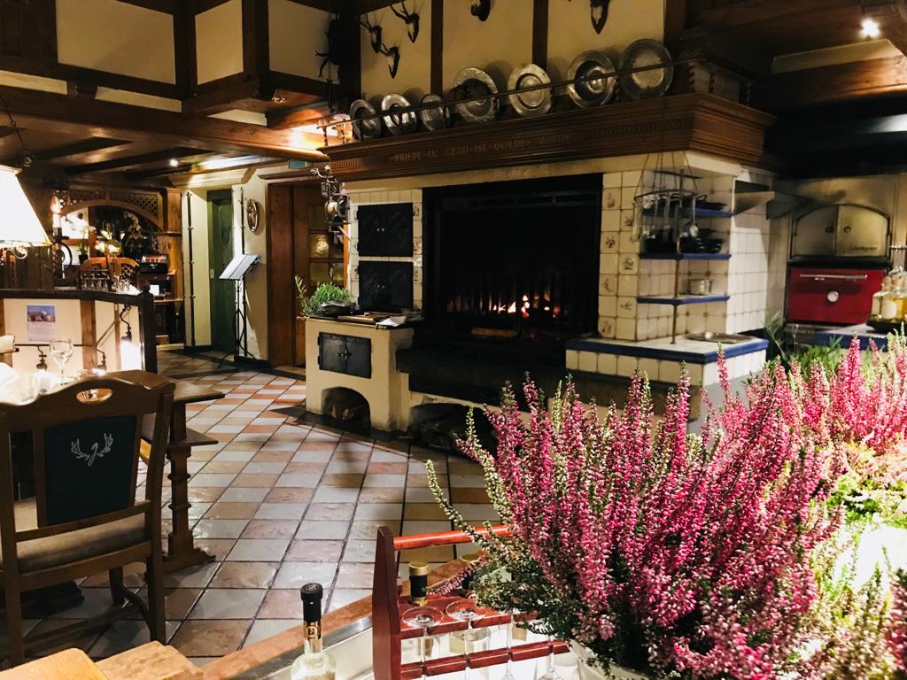 | Jagdhaus Glashütte Zimmer des Kamin | Jagdhaus Glashütte Jagdhaus Glashütte Fischbüffet |