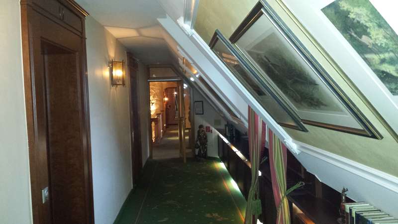 | Hotel Jagdhaus Glashütte Jagdstube Trophäenwand Kamin | Jagdhaus Glashütte Bad Laashpe Empore |