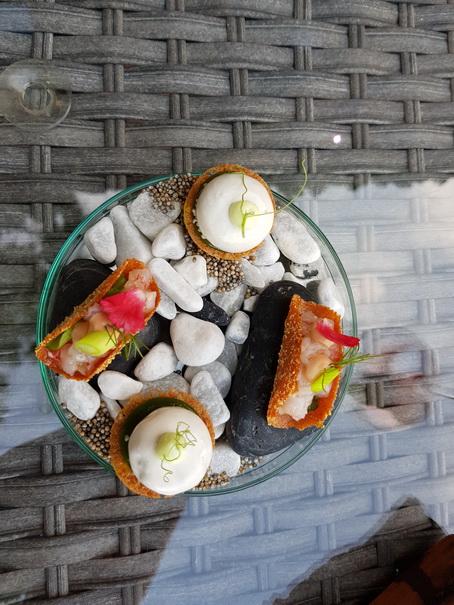 | Halbedel Menü Yellow Fin Tuna mariniert Tartar mit Ingwer Karotte Jacobsmuscheln Steinbutt Kartoffelkruste Morcheln Blumenkohl US Beef 1 Essenz Ravioli Tartar US Beef 2 Filet Krazt + Rüben Rohmilchkäse Rhabarber Rote Beete Matcha tee € 125,- -ohne Käse € 110,-- |
