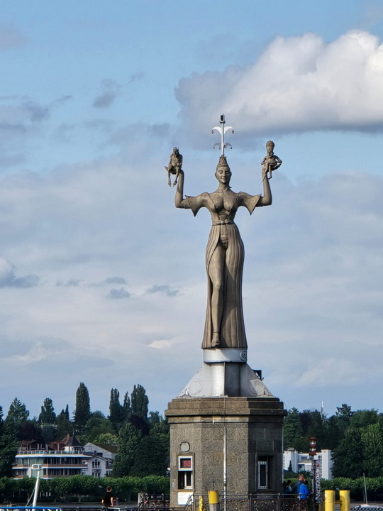 e Imperia ist eine 9 Meter hohe, 18 Tonnen schwere Betonfigur, die seit 1993 am Hafen von Konstanz steht . Sie wurde in einer spektakulären Nacht-und-Nebel-Aktion aufgestellt Die Skulptur zeigt eine spärlich bekleidete Kurtisane, die eine Narrenkappe trägt – ein Hinweis auf Narrenkunst, Satire und Gesellschaftskritik