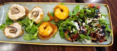 Bresaola Pancetta Tris Bruschetta Arrancini Meeresfrüchte Kaktusfeigen Silvester 24   Biscottidatè Seppia Weinprobe Sera