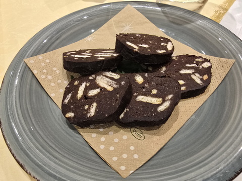 | floenzplaetzchen Salame di cioccolato ist keine echte Salami, Kalte Hundeschnauze | Silversterfeuerwerk Marktplatz Drolshagen 2024 |