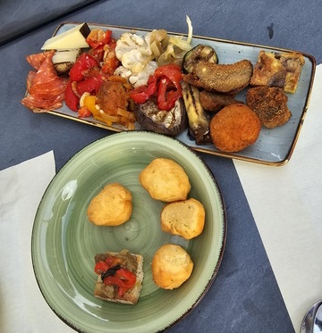 Bresaola Pancetta Tris Bruschetta Arrancini Meeresfrüchte Kaktusfeigen Zucca Silvester 24   Biscottidatè Seppia Weinprobe