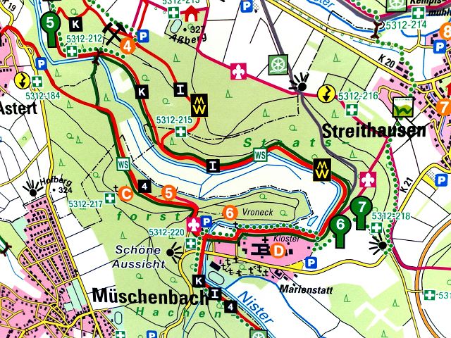 Die Nister Wanderweg an der Nister entlang entweder als Rundweg wieder zur Abtei oder den Wallfahrtsweg 24 km bis Kloster Marienthal