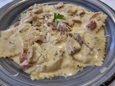 Ravioli Buon Gusto mit Steinplizfüllung und Salcica |