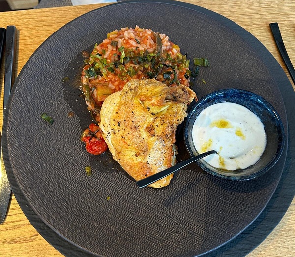 Chicken breast filet. grilled in our own garlic sauce topped with onions.