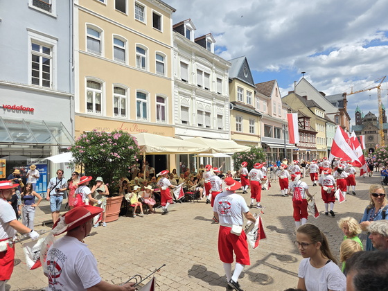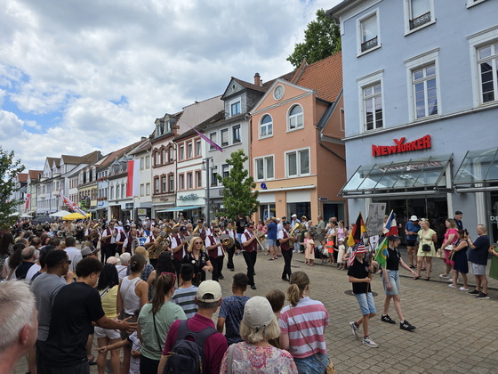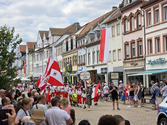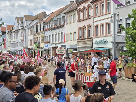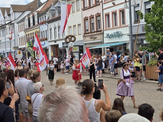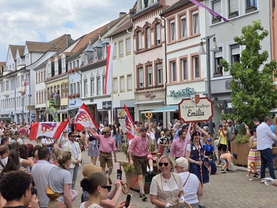 Der Brezelfestumzug in Speyer findet 2025 als "Brezelfestparade" statt, einer kompakteren Form des traditionellen Umzugs, ohne motorisierte Fahrzeuge. |