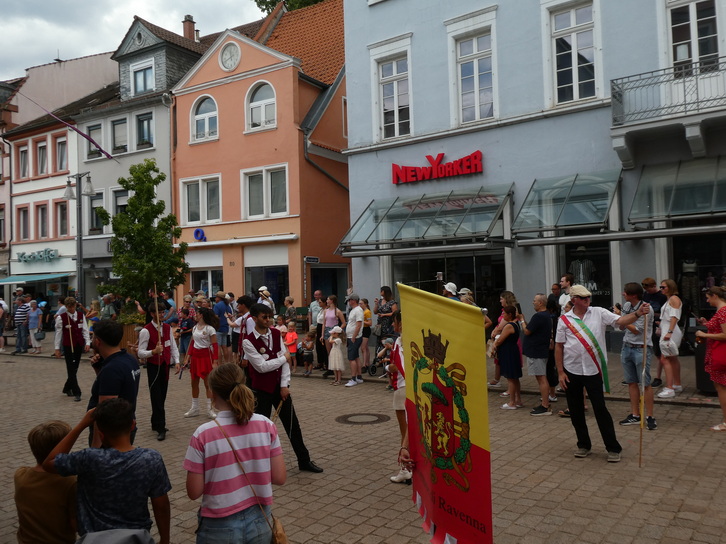 | Speyerer Brezelfest Brezelfestparade Schnacken und Fahnenschwenker aus Ravenna Italien | Speyerer Brezelfest Brezelfestparade |