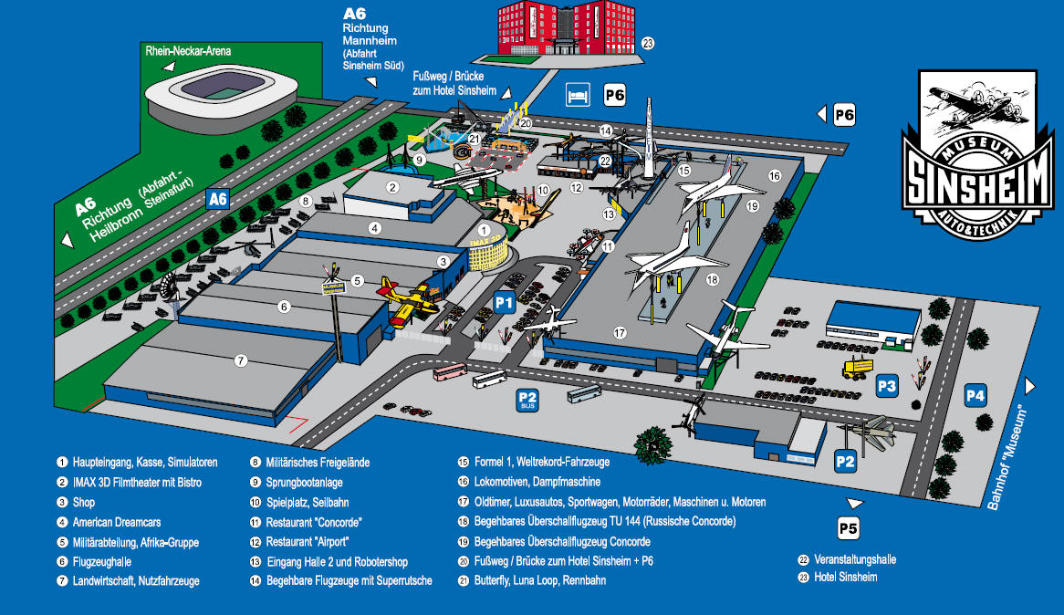 | Im Auto & Technik MUSEUM SINSHEIM können Sie das Abenteuer Technik in einer einzigartigen Form erleben - aufregend, spannend und immer unterhaltsam. Das Highlight: eine Original-Concorde der Air France und eine russische Tupolev Tu-144 - die beiden einzigen jemals gebauten Überschall-Passagierflugzeuge - voll begehbar Seite an Seite in Startposition. Das begehbare Museumsdach bietet einen direkten Zugang zur Concorde, zur Tupolev Tu-144 und zu vielen weiteren Legenden der Luftfahrtgeschichte. |
