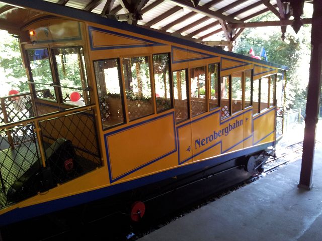 NerobergInnerhalb der Stadt zählt der Neroberg, der Hausberg Wiesbadens, zu einem der beliebtesten Ausflugsziele. Die 245 Meter hohe Anhöhe, auf der auch der Neroberger Wein unter Obhut der Hessischen Staatsweingüter gedeiht, bietet viele Freizeitmöglichkeiten. Der runde Neroberg-Tempel wurde 1851 von Philipp Hoffmann errichtet. In der Nähe gibt es eine so genannte "Erlebnismulde" für Kleinkunstaufführungen und ein Ausflugscafé. |