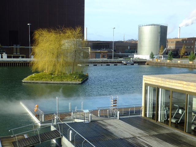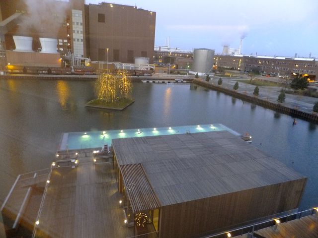 Ritz Carlton  Kamin mit Blick auf Werk VW Ritz Carlton stilvoll nächtigen vor der Fabrik VW  mit Aussenbad 29 C