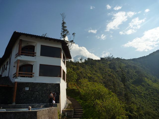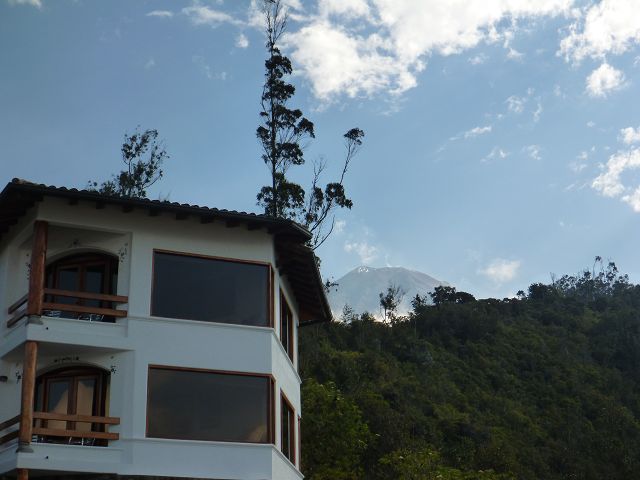 | Tungurahua vom Pool Luna Runtun aus gesehen | die strasse am berg ist immer noch gesperrt |