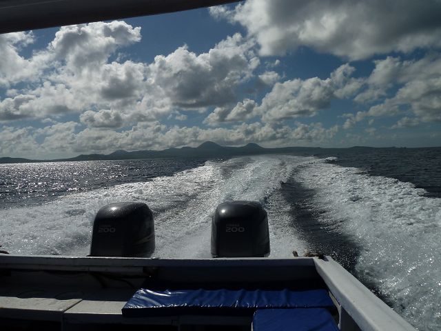 zurück Ecuador back Floreana Ecuador Galapagos Insel Floreana Isla Floreana Schifffahrt Speedboat Floreana hat 173 km² bis 640 m hoch
