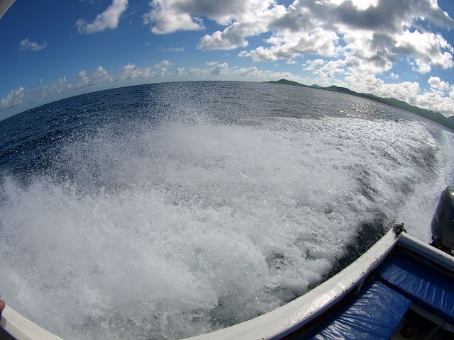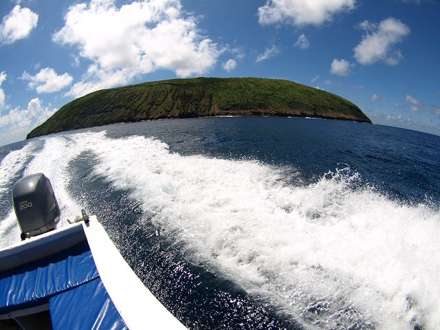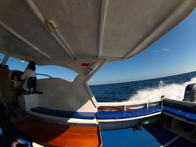 mit 400 Ps nach Floreana  Fahrt nach Floreana Schiff 400 Ps Aussenborder