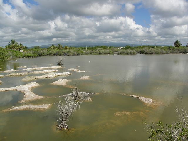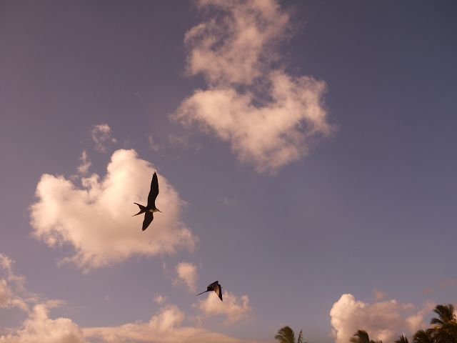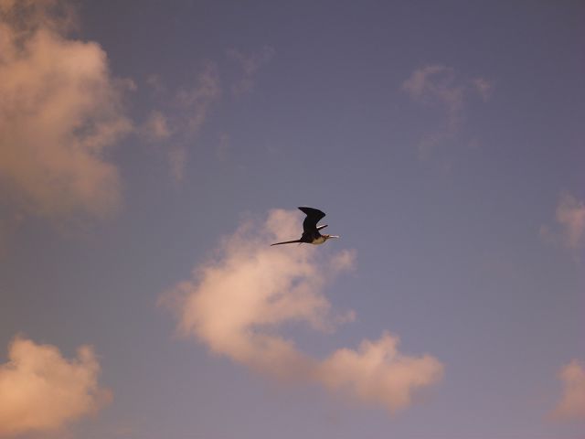 | Bucht vor dem Hotel auf Isabela mit Bar Iguana Bar | Fregattvogel |
