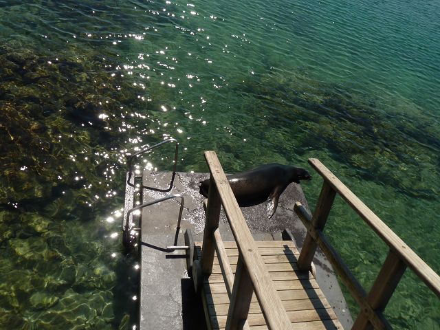 | Weg zur Schnorchelbucht | Begrüssungsrobbe am pier |