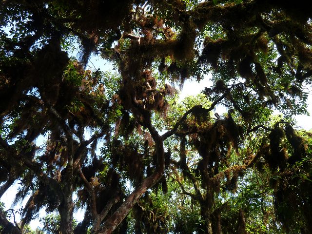 | escalesia pedunculata Die Zweige sind mit Epiphyten bewachsen | Scalesia Guayabillo Bäume Psidium galapageium Bryopteris liebmanniana, |