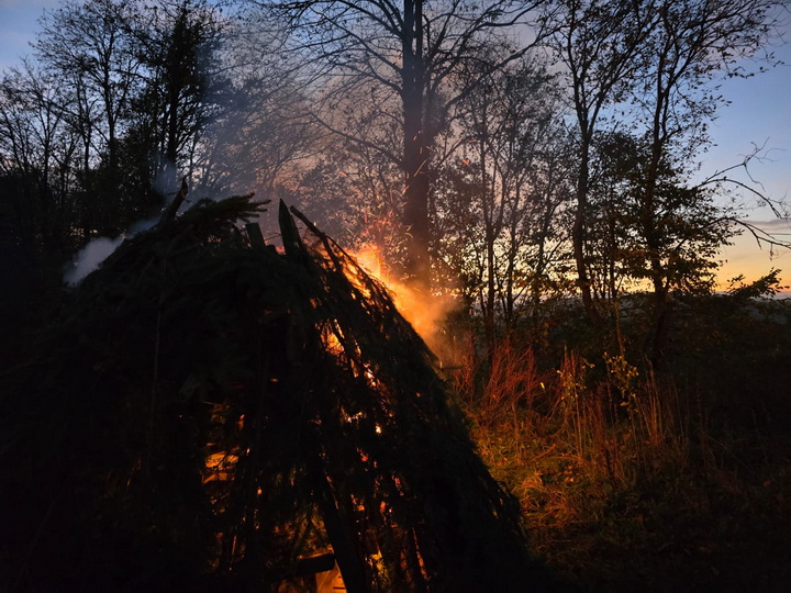 2 stes Treiben sülemicke Kessel Anfangs 2 Schnepfen und 2 Hasen und noch 1 Fuchs  entwischt , dann um 16.30 kam der spanende Teil eine Dicke Bach flüchtet aus dem Kessel Richtungs Stamms Haus hoch und lässt Ihre 10 Frischlinge von 15 kg im Ginsterdickicht zurück. Die blieben immer in der schützenden Ginsterdickung dann  mal flitzen 2 nach hinten ( nicht erwischt ) Die Durchgeschützen und Treiber bekamen die Frischlicnge nicht aus dem Ginsterdickicht raus. Die Ansage war mal 10 Minuten Hunde fest und dann wurden die Frischlinge nevös (war die Luft rein ?= .  Dann gelang es 1 Frischling zu fliehen aber seine Flucht wurde unterbrochen .