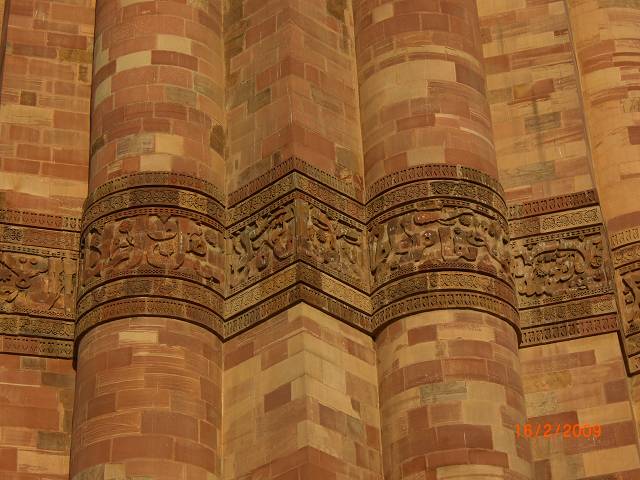 | Qutb Minar Sandsteinturm Höhe von 71 m. 15 m Durchmesser | Baubeginn ca 1200 und dann immer wieder erweitert bis ins 1500 |