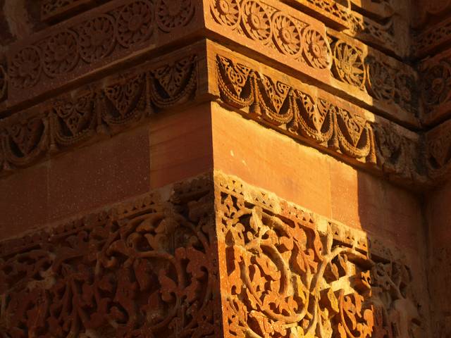 | Errichtet über den Sieg der Muslime gegen die Hindu | Quwwat-Islam Moschee Bauherr "Ala-ud-din" nur Stumpf vollendet |