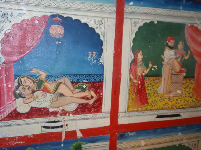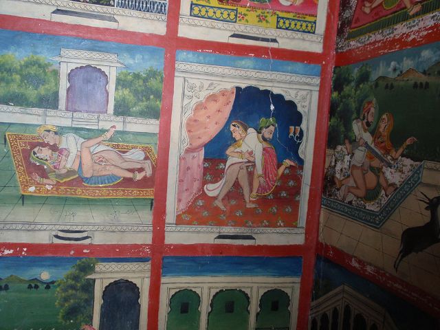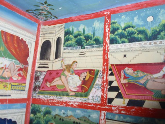 | Kamasutra Wandbilder hinter einer Holztüre | Kamasutrabilder |