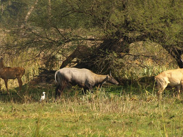 | Nilgauantilope männlich mit Hörnern bis ca 30 cm max bis 300 kg | Nilgau nur noch in Indien + Pakistan , früher auch in Afrika |