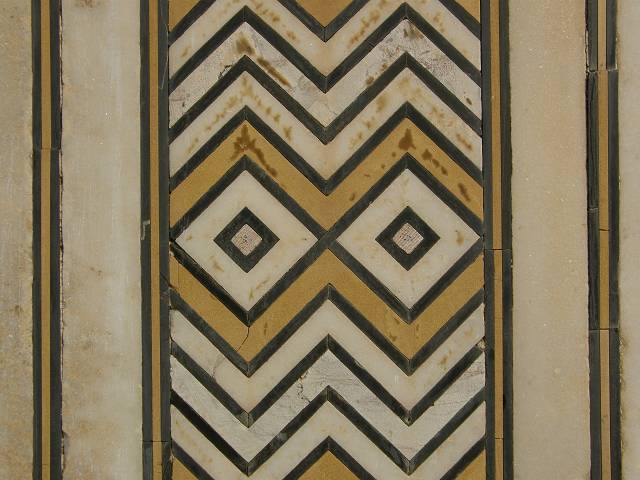 | Weißer Marmor schwarzer Schiefer gelber roter und grauer Sandstein als Verzierung | Pietra Dura Hauptbogen der Moschee die