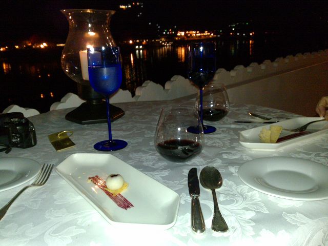 the changing colours of the sky and waters over spirits and entrée’s in the
