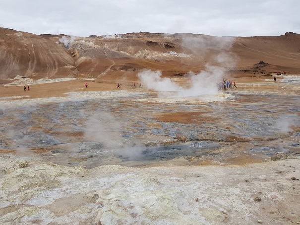 Am nächsten Morgen wollen wir ins Vulkansystem Askja mit seinem gleichnamigen Zentralvulkan fahren. Seine letzte aktive Eruption geschah 1961 und eine neuerliche Auffüllung der Magmakammer in drei Kilometer Tiefe deuten auf eine künftige aktive Phase hin. Bei unserem Ausflug zum Vulkankrater (Caldera) mit Kratersee kommen wir auch am Viti-See vorbei, der mit seinen 20 bis 24 Grad warmen Wasser zum Baden einlädt. Unsere Weiterfahrt führt uns zu einem Höhepunkt dieser Reise, dem Dettifoss. Er ist der gewaltigste Wasserfall Europas. Auf einer Breite von etwa 100 m stürzen die Wassermassen des Jökulsá á Fjöllum spektakulär über 45 m in die Tiefe. Dieser Fluss hat aber noch weitere sehenswerte Wasserfälle zu bieten, den Selfoss und Hafragilsfoss