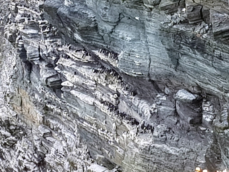 Kirkwall Scotland Vogelfelsen Trottellummen, Dickschnabellummen, Eissturmvögel und Tordalks. Kirkwall Schottland Trottellummen, Dickschnabellummen, Eissturmvögel und Tordalks.
