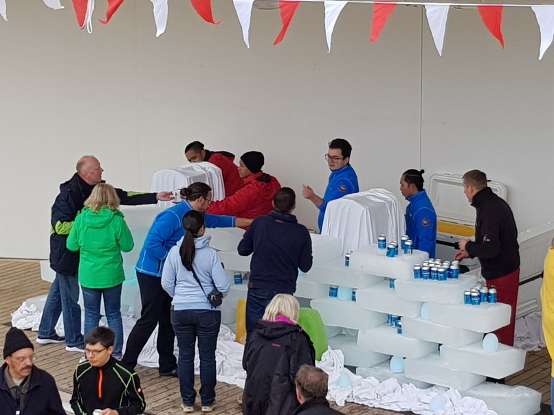 | Longyearbyen Svalbard Spitsbergen Spitsbergen Pilsner auf dem Pooldecke verkauf des Bieres der nördlichst gelegennen Brauerei der Welt | Longyearbyen Svalbard Spitsbergen Spitsbergen Pilsner Icecold Spitsbergen Pilsner on Ice |
