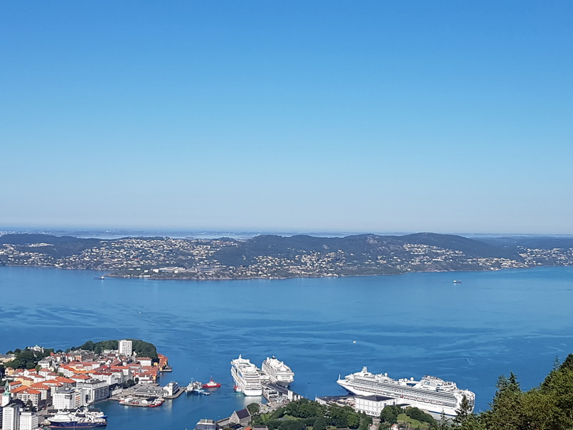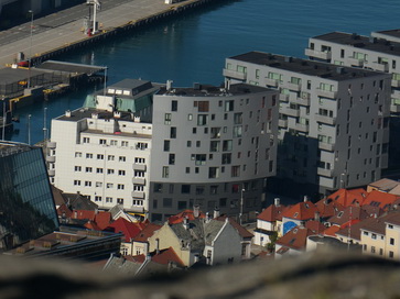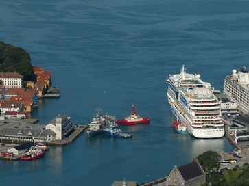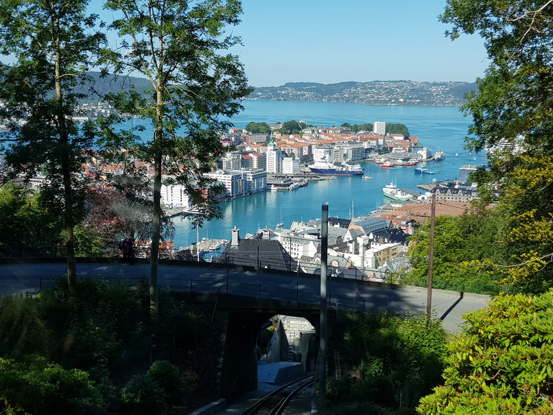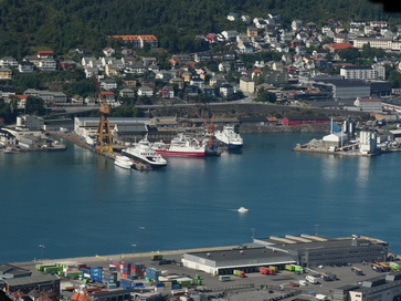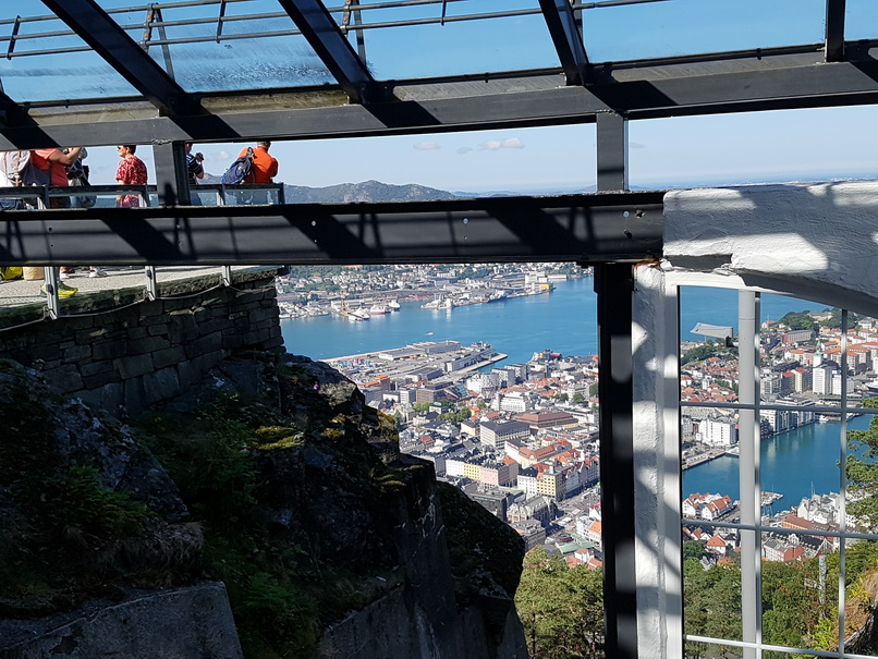 | Restaurant Bergen Hausberg Fløyen Talstation Fløi-Bahn | Bergen blick von Oben |