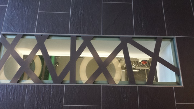 Blick durch ein fester im Boden in den Käse KühlraumKaesevitrine hungen  Hungener Käsescheune  www.hungener-kaesescheune.de