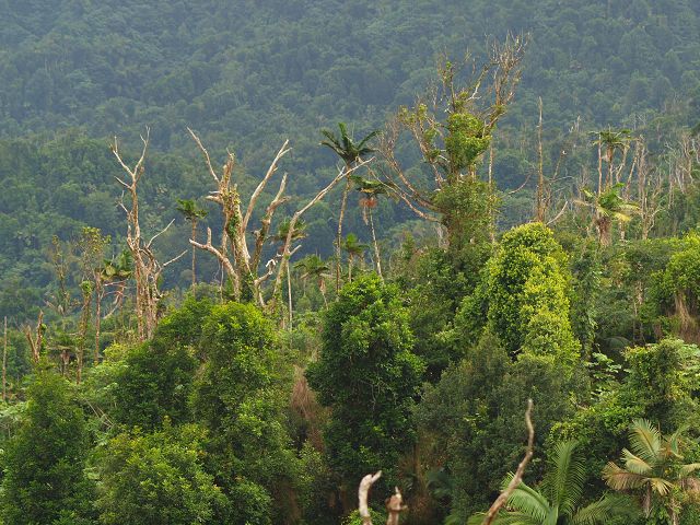 Ein schöner Wanderweg zu den Concord Falls geht etwa 500m vor dem Ende des Wanderweges zu dem Mount Qua Qua links ab. Im Besucherzentrum kann man manchmal einen Führer bekommen (Preis vorher verhandeln), jedoch kann man diesen Weg auch gut selber finden: Der Wanderweg führt vom Wanderweg zum Mount Qua Qua zunächst bergab in westliche Richtung. Bevor dieser - 10m weiter - wieder bergauf führt, rechts im Gebüsch den kaum sichtbaren Trampelpfad suchen und nicht dem breiten Weg wieder rauf folgen, der nach einigen hundert Metern immer schlechter begehbar wird und sich irgendwann auch ganz verliert. Ist man rechts nach Norden abgebogen, folgt der Weg bald einem ganz kleinen Bach, der zu den Concord Falls fließt und dem man immerwieder überquert oder auch ein paar Meter nebenher folgt. Nach etwa einer halben Stunde vereinigt sich dieser Bach mit einem Bach aus Osten und fließt nun nach Westen. Hier dem Bach runter nach links folgen. Der Weg führt nun manchmal auch einige zig Meter rechts neben dem Bach, so daß man ihn nicht immer sieht oder hört. An dieser Stelle ist der Weg zunächst wieder leichter erkennbar. Nach einiger Zeit geht rechts ein Weg ab nach oben. Dieser verliert sich jedoch nach etwa 100m im Wald. Daher links dem Weg runter zum Bach folgen. Dieser Bach muß dann bald gequert werden. Der Weg wird unübersichtlicher, bleibt jedoch immer in der Nähe des Baches. Der Bach muß dann wieder gequert werden und der Weg geht nun deutlich höher als der Bach weiter. Bald kann man das Meer sehen und der Weg geht über Treppen steil bergab. Zunächst sind es einfach Bretter, später in Stein gehauen. Hier war der Weg durch ein Kabel gesichert. Am Ende muß der nun deutlich breitere Bach gequert werden. Links geht es zu dem zweiten und dritten Wasser Fall von Concord, rechts zum ersten und zum Ausgang aus dem Urwald. Nach einigen Querungen des Baches kommt man zum ersten Wasserfall und zu einer geteerten Straße. Wenn man rechtzeitig hier ist, kann man mit einem Bus zurück fahren, ansonsten muß man die etwa 3Km lange Straße runter zu Concord folgen und auf der Hauptstraße den Bus nehmen. Dieser Wanderweg sollte nur bei guten Wetter gegangen werden, da gerade die in Stein gehauenen Treppen am Ende sehr steil sind. Wanderzeit ca. 5 Std.