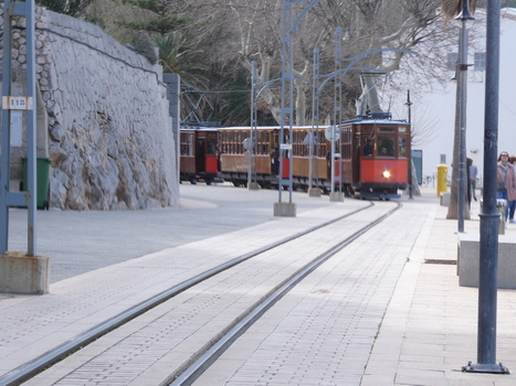 Fahrt von Palma mit dem Zug und der Straßenbahn verbindet.