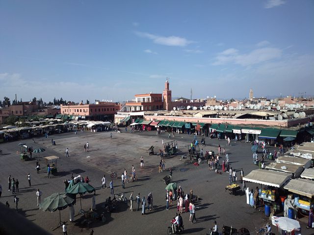 | Marrakesch Djemaa el Fna-Platz "Platz der Geköpften" Cafe de France unser Hochsitz | Marokko Marrakech Maroc Marrkesch Djemaa el Fna-Platz "Platz der Geköpften" |