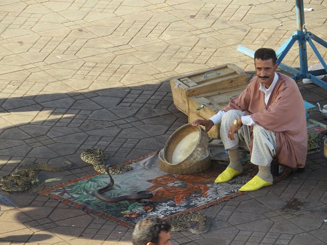 | Marokko Marrakech Maroc Marrkesch Wasserträger | Marokko Marrakech Maroc Marrkesch Schlange um den Hals |